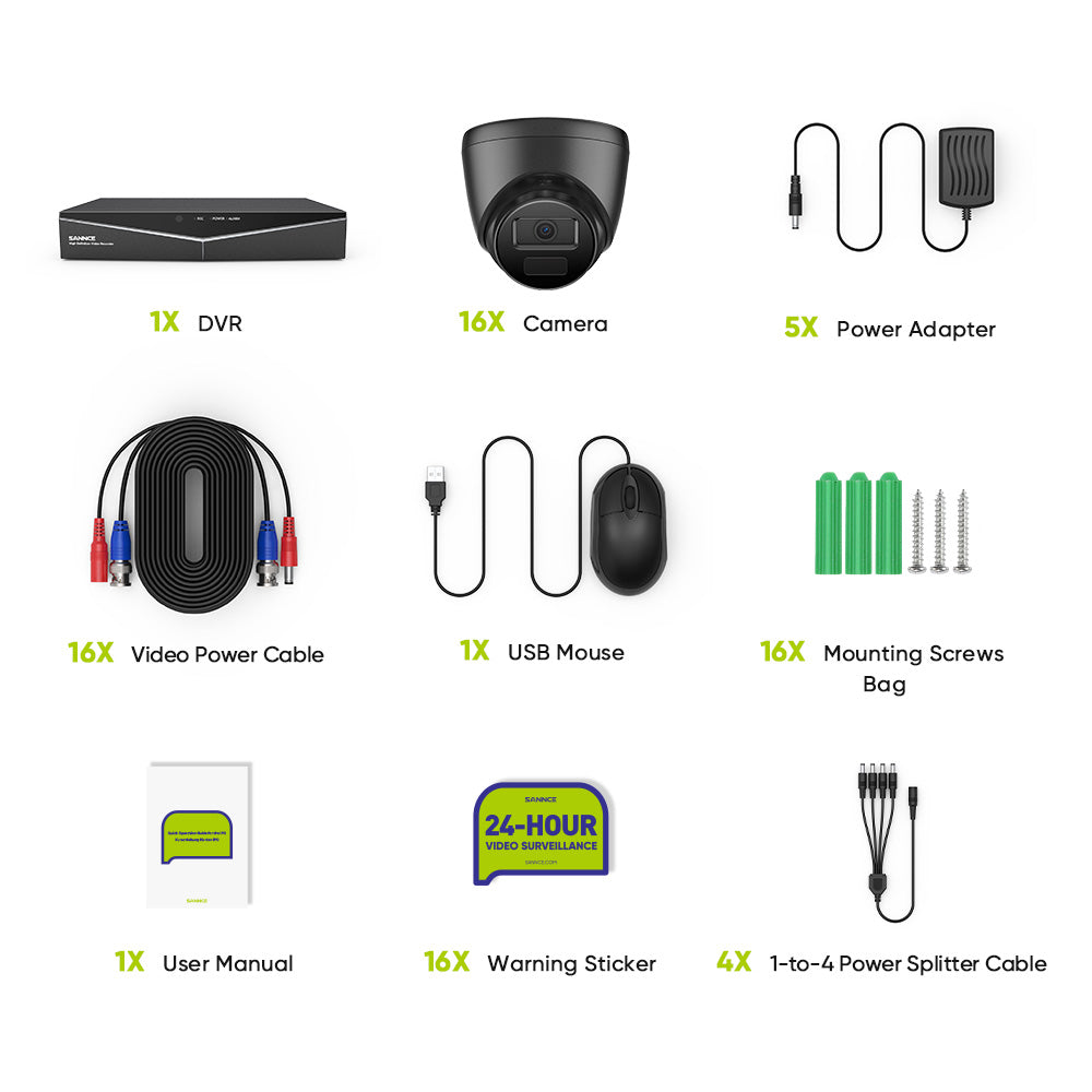 The powerful 5-in-1 DVR can integrate with all SANNCE and third-party cameras. With the compatibility, you can connect up to 16 analog or IP cameras into the smart DVR system, without any hardware limitation.