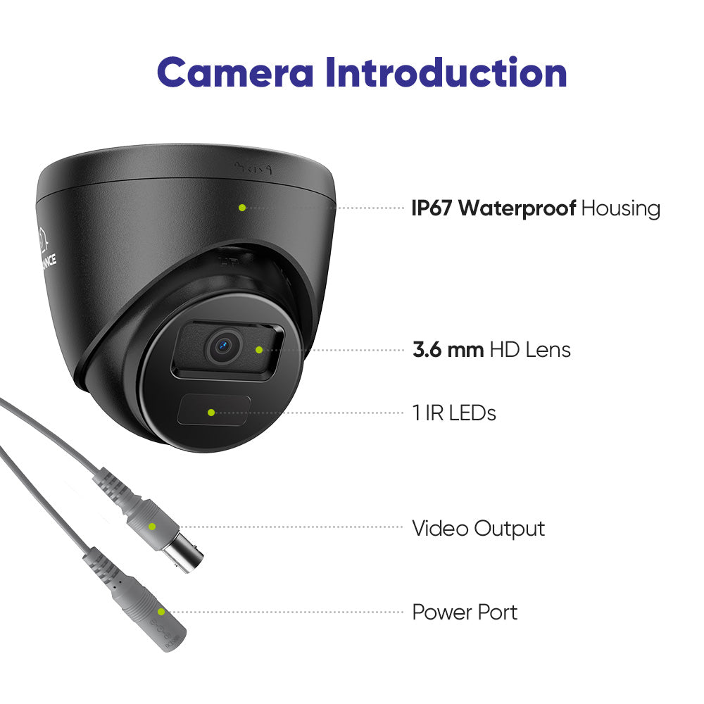 IP67 waterproof rating allows the weather & corrosion-resistant wired camera to be durable enough to use outside & inside. Just install the outdoor wired camera at your home, office, factory, warehouse, garage, anywhere you like, to get 24/7/365 monitoring.