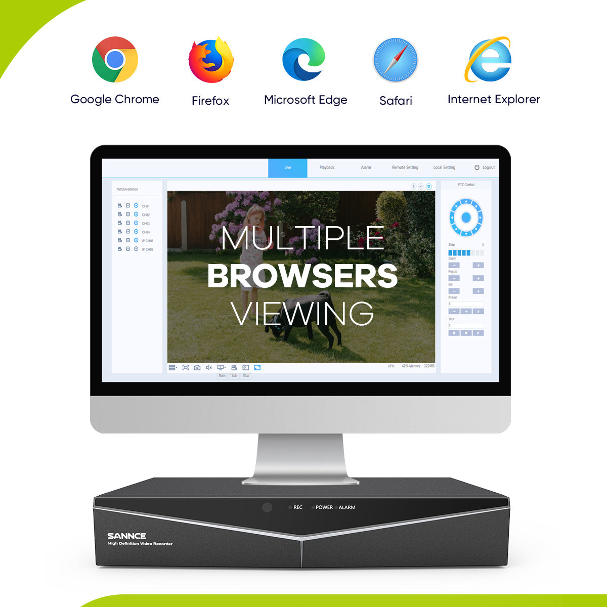 It’s just a breeze to control the DVR remotely via 3G/4G/5G or WiFi through your smartphones, tablets, computers, laptops, multi browsers, and VMS PC client. Keep tabs on your home & business when you’re working, shopping, or traveling.