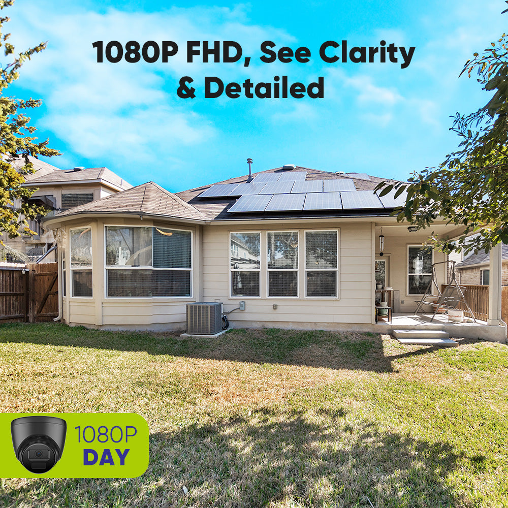 The intelligent 8 pcs IR LEDs enable the CCTV surveillance camera to capture sharp images from up to 100 ft away in almost complete darkness. See everything clearly in 1080p Full HD regardless of day or night.