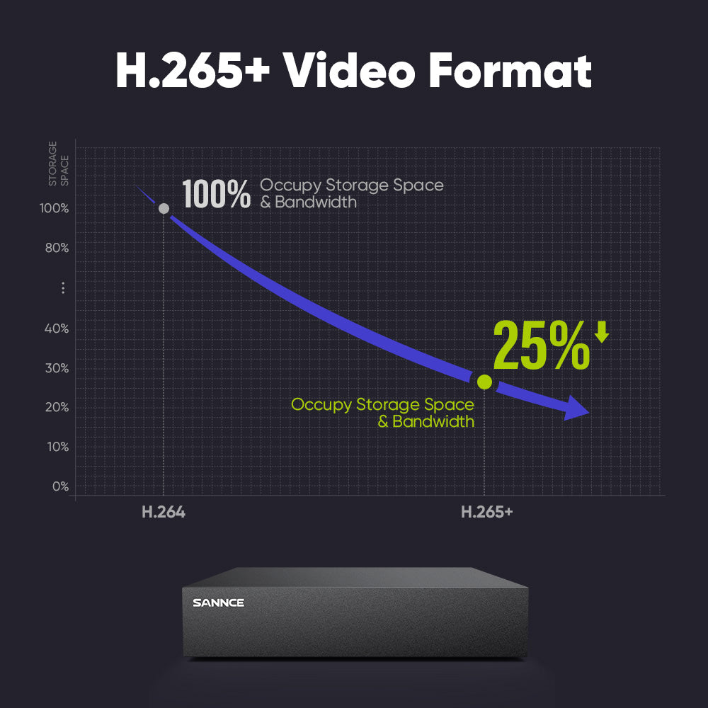 H.265 Pro+ coding offers longer recording time before overwriting the older recordings, saving up to 80% of storage space than H.264 systems. You'll enjoy fast & smooth streaming without latency when accessing the DVR.