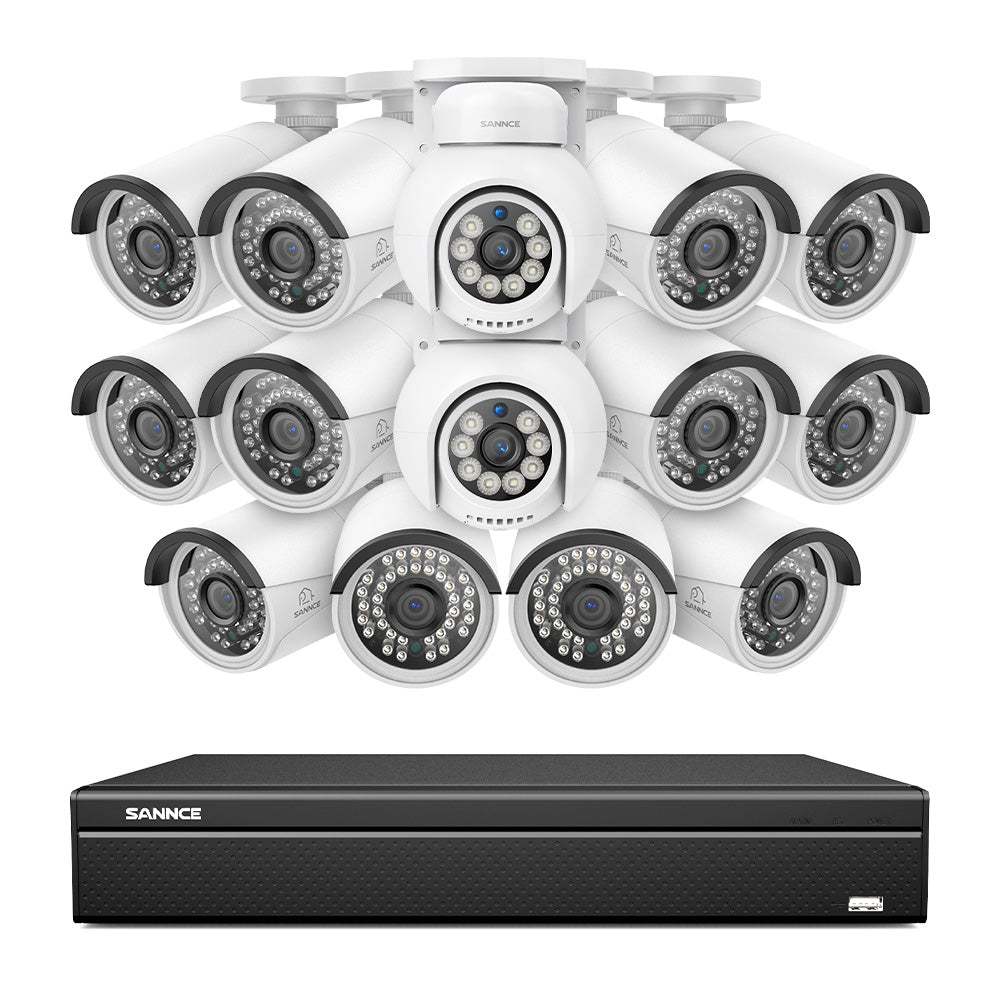 16 Channel 4K PoE Bullet & PTZ Security Camera System, 8MP Outdoor PoE IP Cameras, Pan & Tilt, ONVIF Supported NVR, Two-Way Audio, Smart Human/Vehicle Detection (12x IP Cameras+2x PT Cameras)