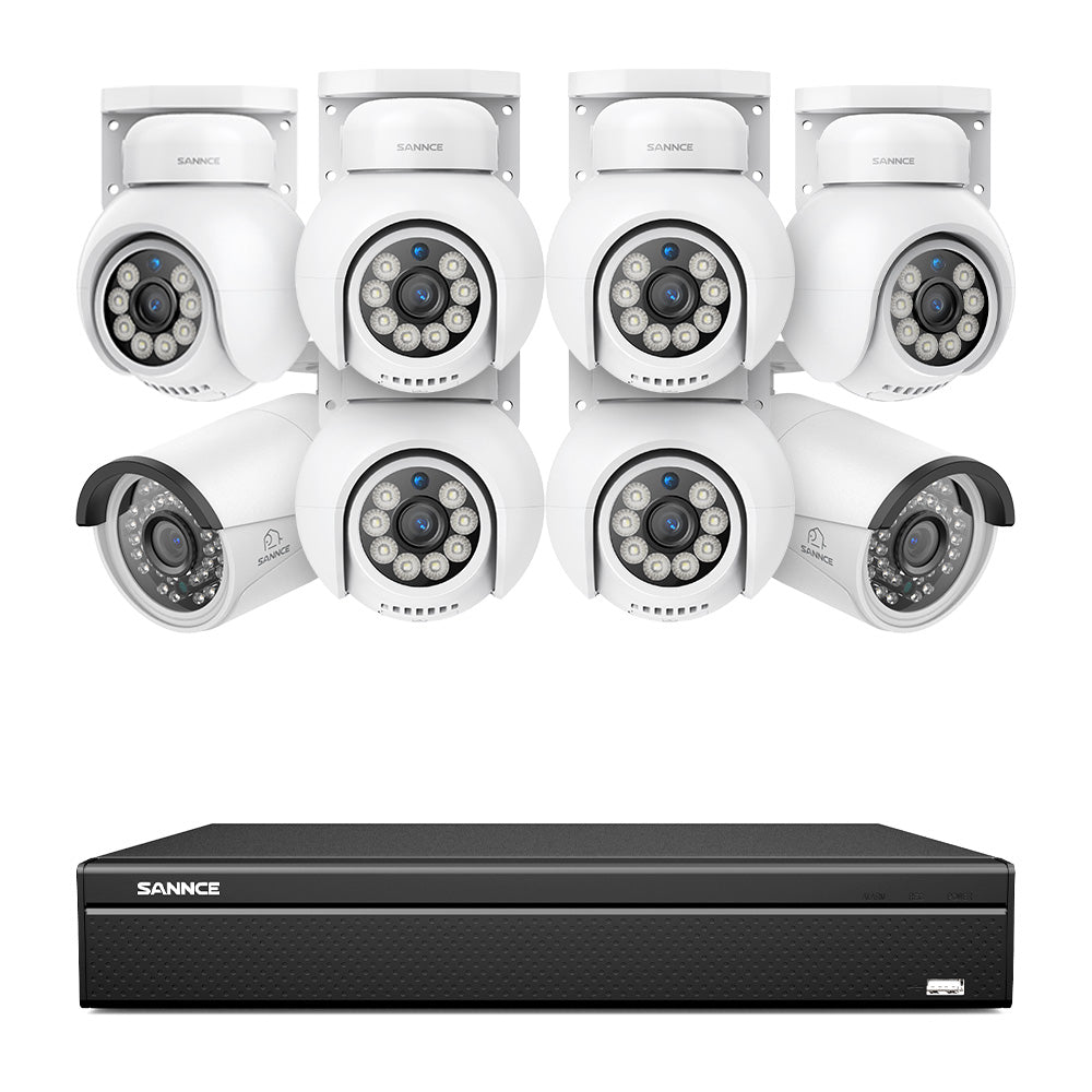 16 Channel 4K PoE Bullet & PTZ Security Camera System, 8MP Outdoor PoE IP Cameras, Pan & Tilt, ONVIF Supported NVR, Two-Way Audio, Smart Human/Vehicle Detection(6x PT Cameras+2x IP Cameras)
