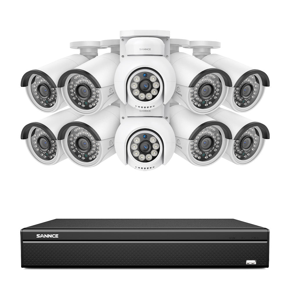 16 Channel 4K PoE Bullet & PTZ Security Camera System, 8MP Outdoor PoE IP Cameras, Pan & Tilt, ONVIF Supported NVR, Two-Way Audio, Smart Human/Vehicle Detection (8x IP Cameras+2x PT Cameras)