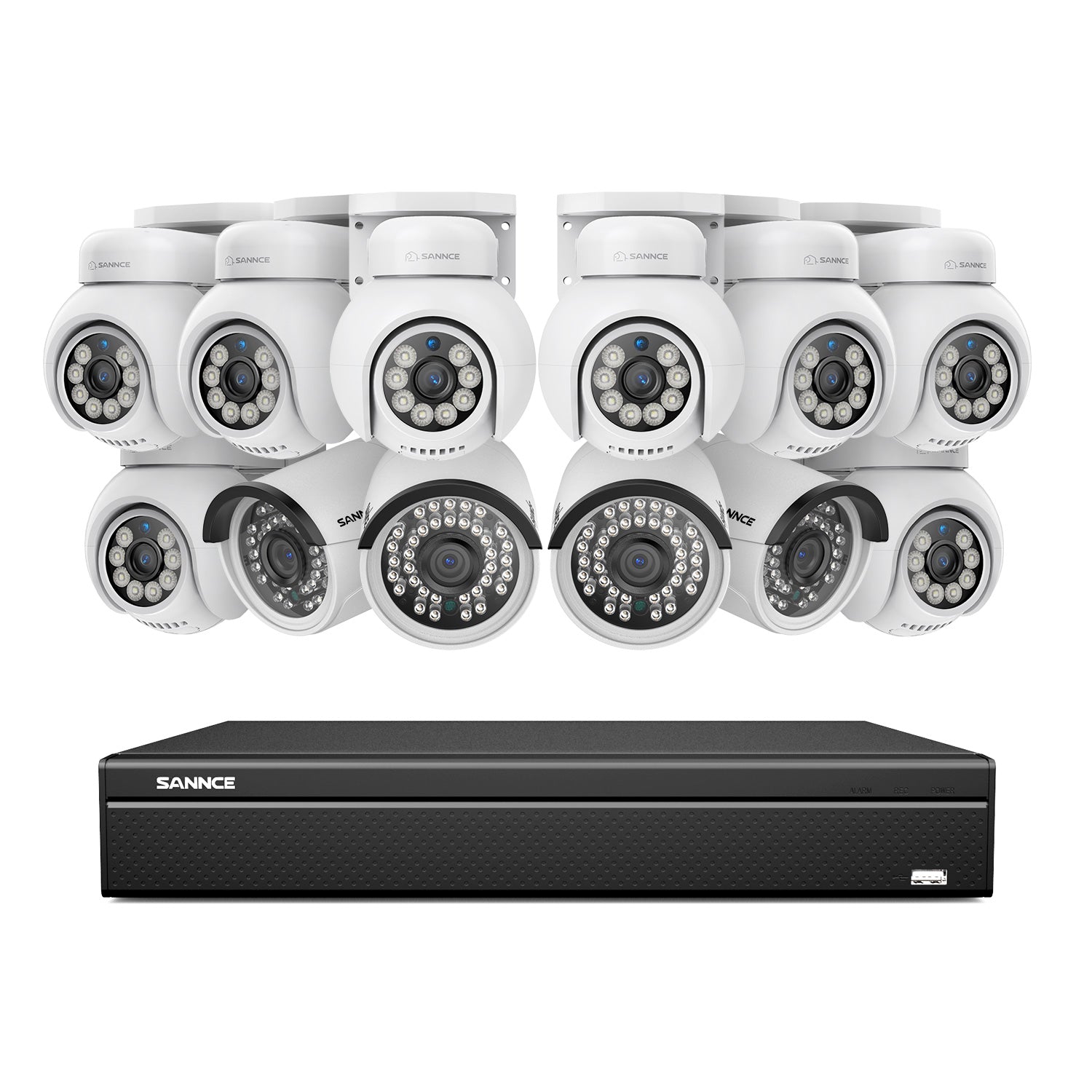 16 Channel 4K PoE Bullet & PTZ Security Camera System, 8MP Outdoor PoE IP Cameras, Pan & Tilt, ONVIF Supported NVR, Two-Way Audio, Smart Human/Vehicle Detection(8x PT Cameras+4x IP Cameras)