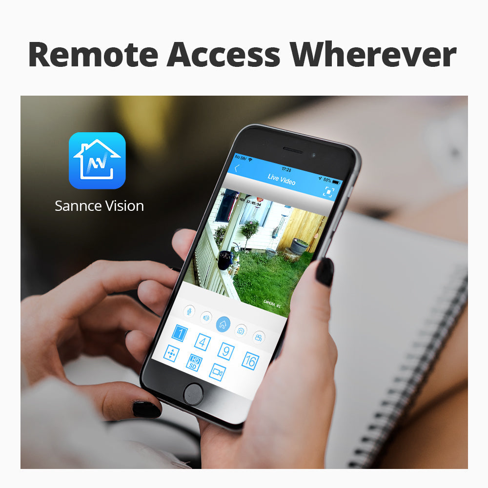 Upon the DVR detects anything unusual, it will send you instant app pushes & email alerts with snapshots. Access the DVR to see the motion events and take action at once. Control the whole system remotely via FREE SANNCE software installed on your smartphone, tablet or computer, when you’re in the office, shopping or traveling.