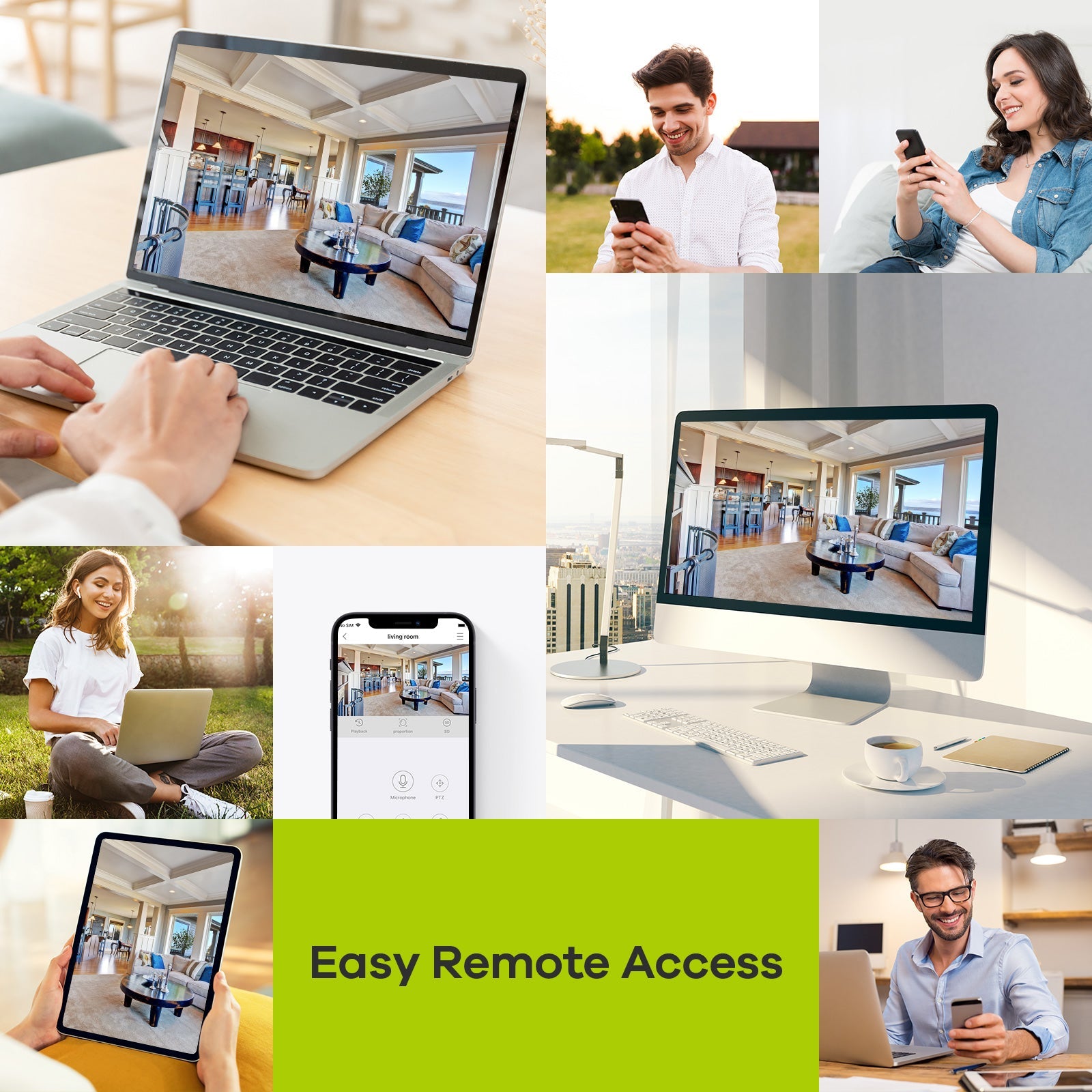 With the advanced motion detection algorithm, the DVR detects any difference and sends you real-time app push notifications and email alerts. Control the DVR remotely via 3G/4G/5G or WiFi through your smartphones, tablets, computers, laptops, and IE browser.