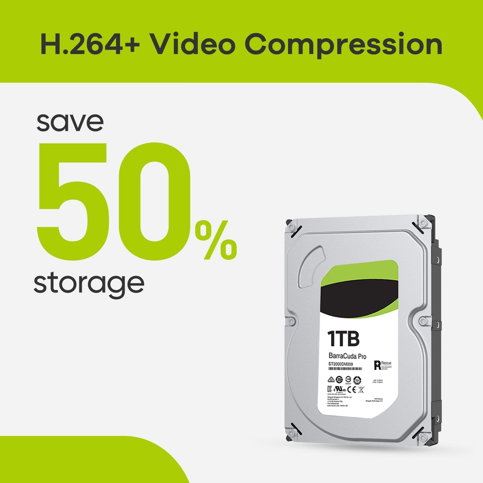 H.264+ coding saves more videos and consumes less bandwidth than H.264 systems. It is the most compatible video compression technology that provides you with ultra-smooth 5MP Lite streaming without all the data.